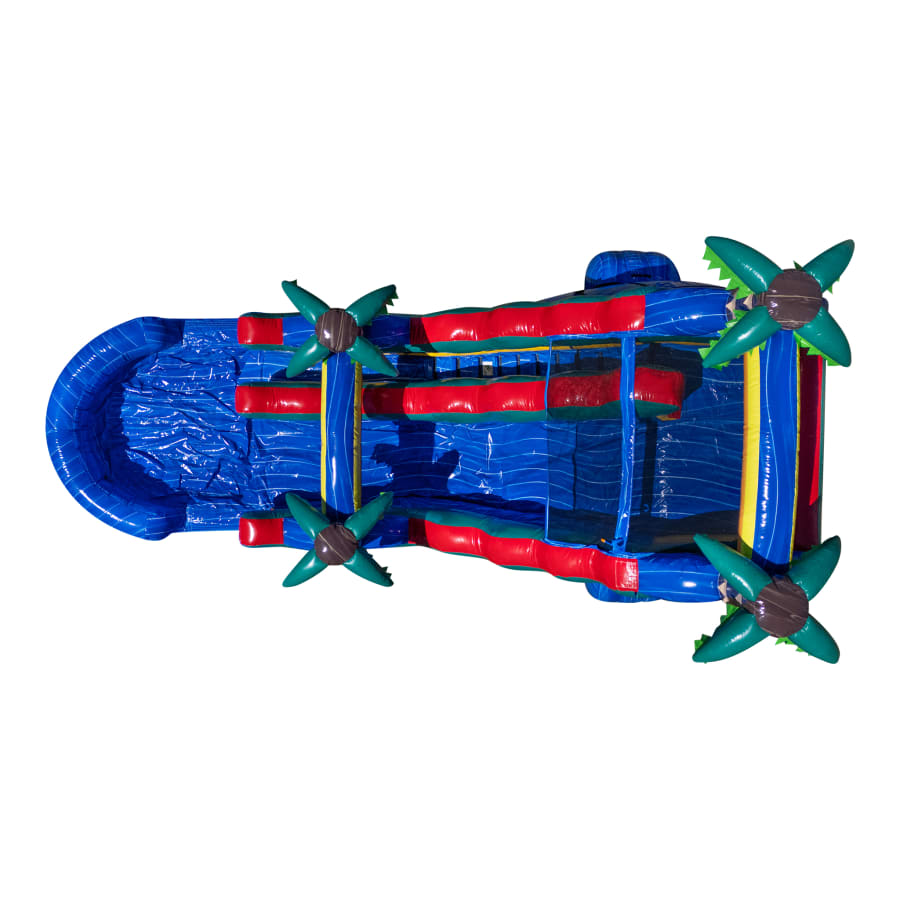 This slide is not just your average water slide. It’s a paradise waiting to be explored! With its 18-foot height, it offers a thrilling drop that will leave you craving for more. The bright blue color adds a touch of tropical fun to any party or event.