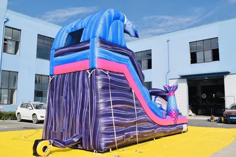 Note: This slide is geared toward children 10 and under and has an inflated splash pad, not a deep pool!