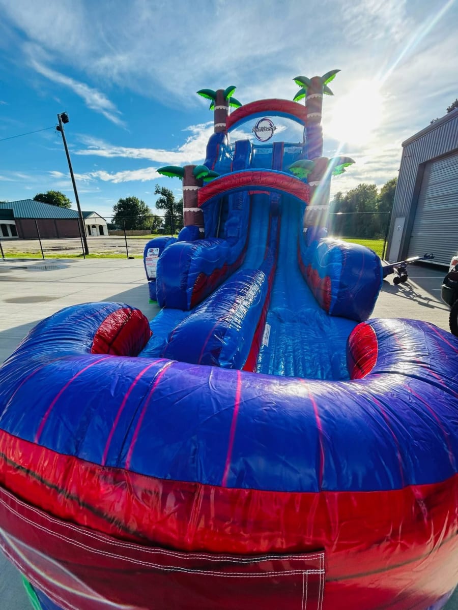 Don’t miss out on creating unforgettable memories! Book the waterslide rentals 22’ Dual Lane Hurricane in Westlake, Lake Charles, Sulphur, Moss Bluff today and watch your guests line up for this wet and wild adventure. 🚀